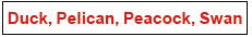 Select the odd one out in the given group. ADuck BPelican CPeacock DSwan