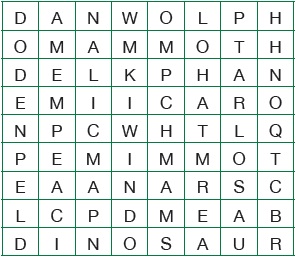 Which of the following CANNOT be found in the given word grid? AA mammal which lays eggs BA flightless bird native to New Zealand CAn extinct member of elephant family DLarge reptile that roamed the Earth millions of years ago