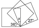 The given figure shows three identical squares. Find x. A30° B27° C36° D16°