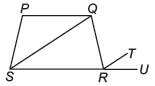 In the given figure (not drawn to scale), line RT is parallel to SQ. If ∠QPS = 100°, ∠PQS = 40°, ∠PSR = 85° and ∠QRS = 70°, then ∠QRT = ________. A45° B65° C85° D90°