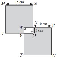 In the given figure (not drawn to scale), if LMNO and TUVW are two identical squares, then find the area of the shaded region. A350 sq. cm B225 sq. cm C450 sq. cm D420 sq. cm