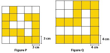 Observe the given figures carefully and select the INCORRECT option. AThe perimeter of shaded part of figure P is 90 cm. BThe perimeter of shaded part of figure Q is 112 cm. CThe number of lines of symmetry in figure Q is 1. DBoth B and C