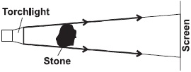 The object X is made up of two materials 1 and 2.When the light is shone on it, it casts a shadow on