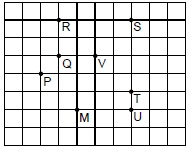 reaches point U while walking through points Q, R, S and T. If he moves only in East, West, North and South directions,